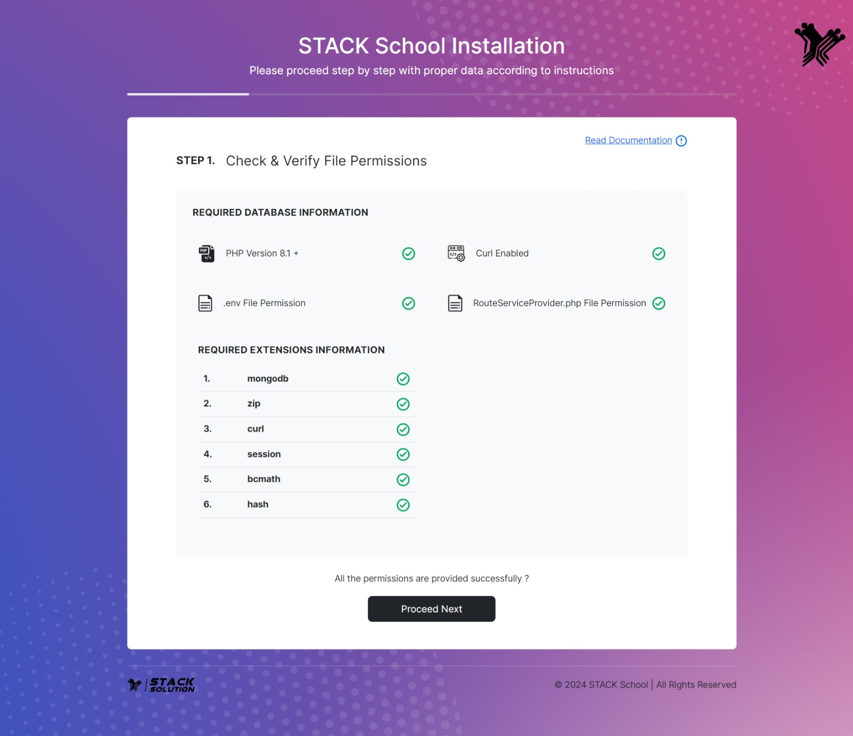 - Step 1: All the required extensions and permissions must be enabled. Check the required information if everything is OK then click on Process Next.