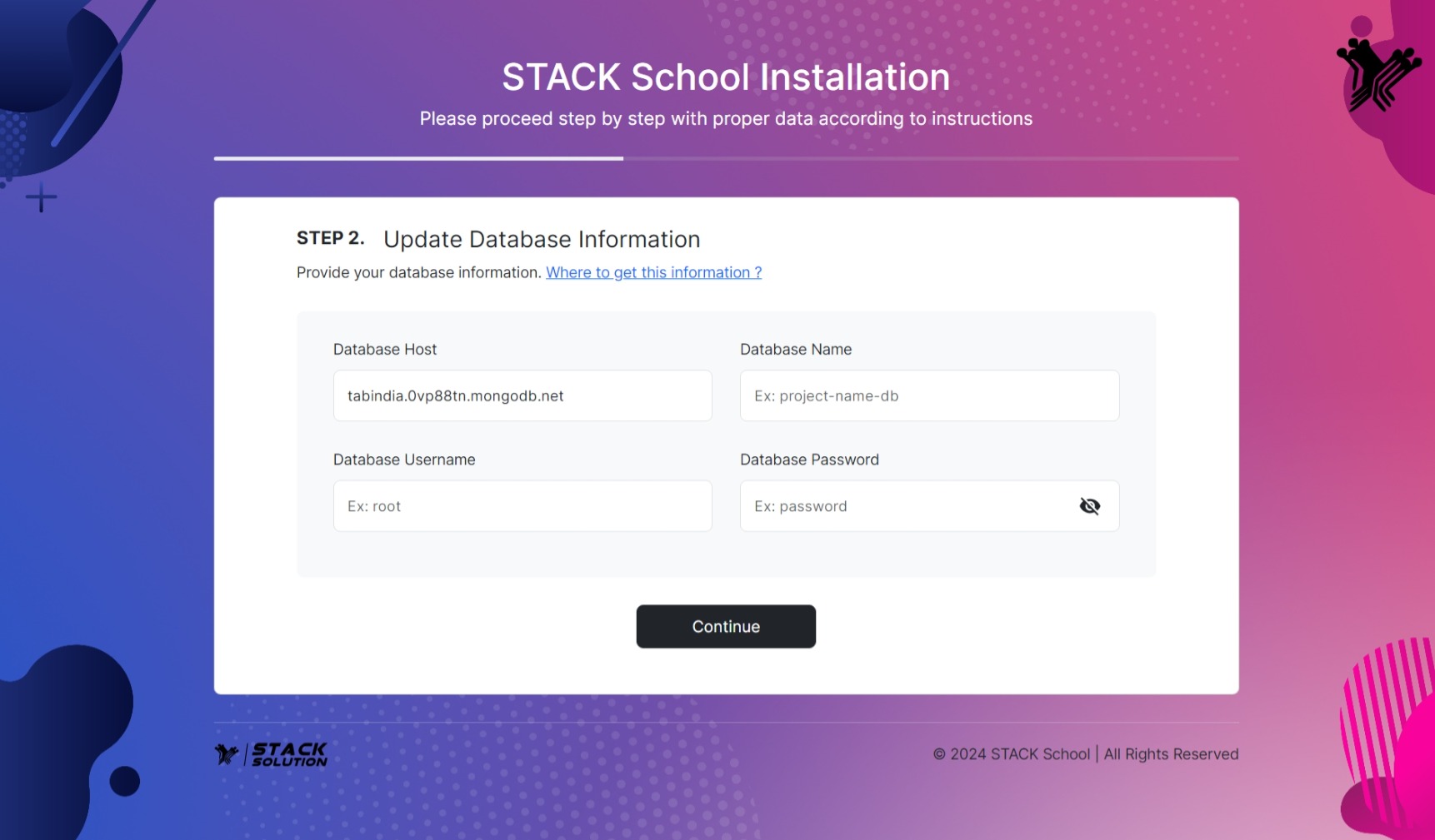 - Step 2: Now you need to set Database host, Database name, Database