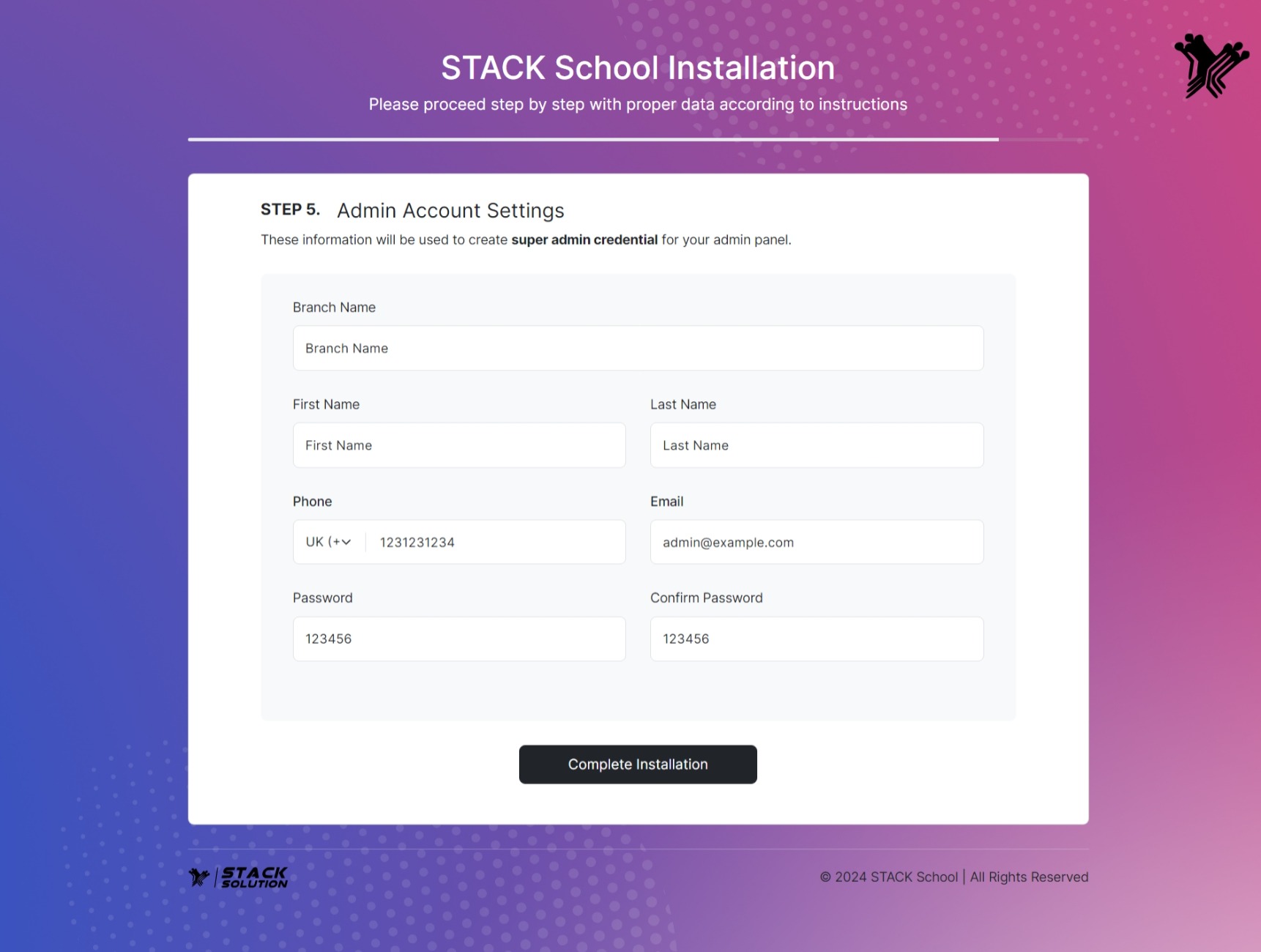 - Step 4: Now fill up the information and click Complete Installation