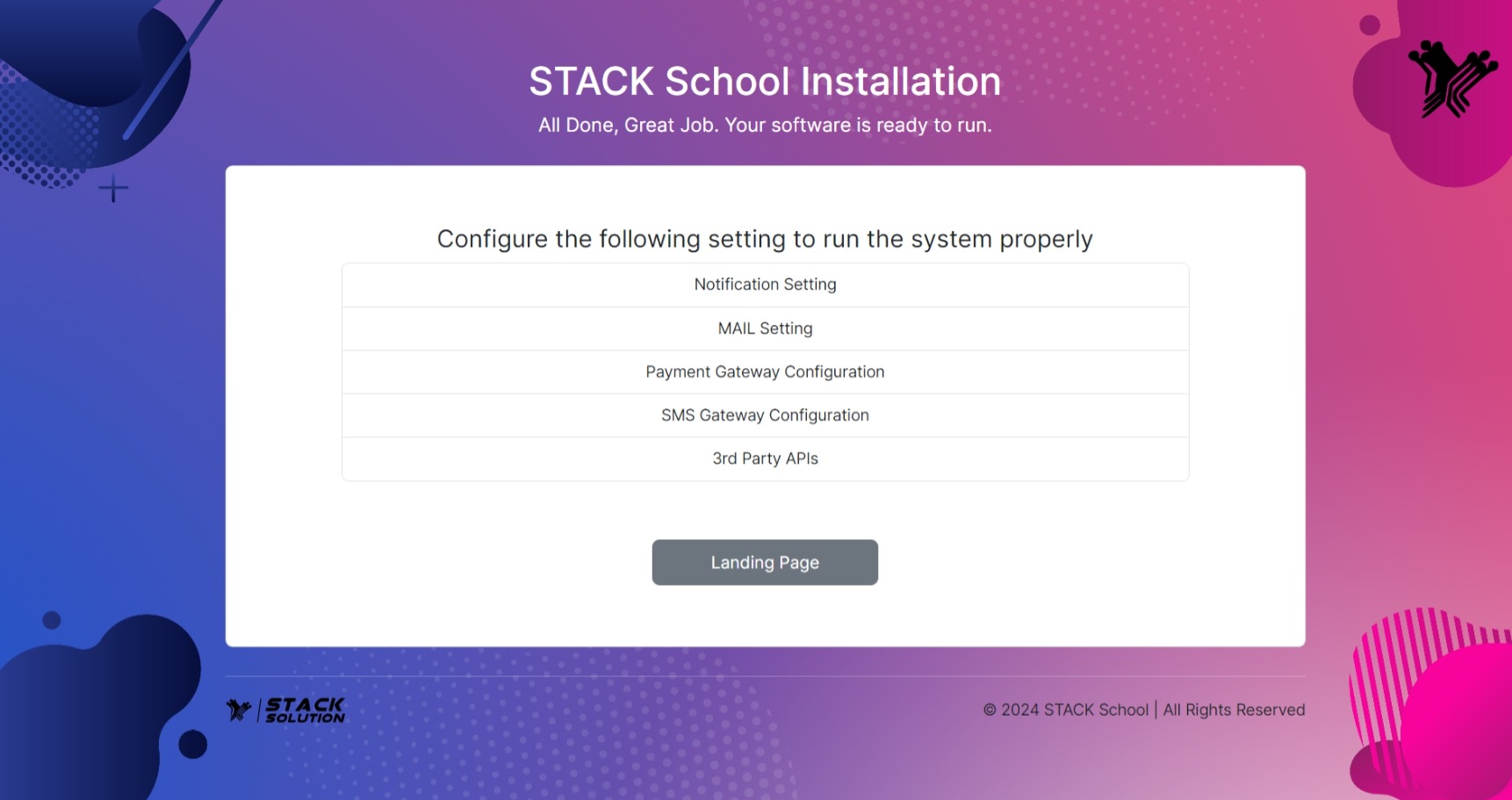 Congratulations! Your software is ready to run. Click on the view Landing Page.